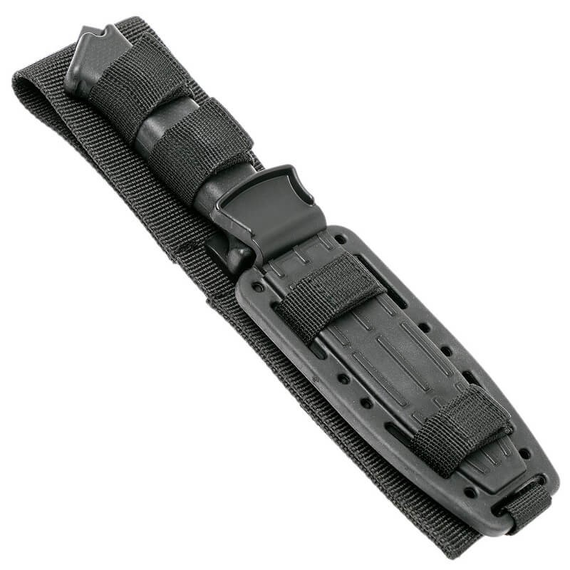 La lame en acier inoxydable US 420HC pleine soie est robuste et recouverte d'un revêtement céramique pour une meilleure résistance à la corrosion et une signature visuelle réduite. Pour l'ergonomie les plaquettes en caoutchouc surmoulées assurent une prise en main douce, confortable mais sûre dans toutes les conditions. Il est également conforme MIRS. Tout comme le couteau, l'étui est conçu pour être à la hauteur de la tâche avec un verrou de pouce à libération par friction pour la sécurité. Le bruit est amorti grâce à un revêtement softgrip moulé qui, comme le nylon balistique, est conforme MIRS. Il est également compatible MOLLE et est livré avec une sangle de jambe.