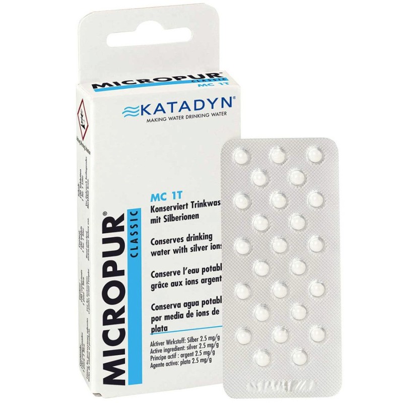 L'efficacité de Micropur Classic MC 1T (Comprimés) est basée sur les propriétés bactériostatiques et bactéricides de l'argent. Contrairement au chlore qui ne reste efficace que quelques heures dans l'eau, les ions d'argent permettent de conserver l'eau claire jusqu'à 6 mois. Les ions d'argent se déposent sur les parois des cellules des microorganismes et empêchent ainsi leur multiplication.