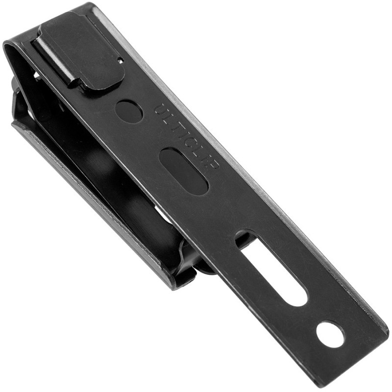 Le UltiClip XL est un clip en acier vous permettant de fixer votre étui de couteau à lame fixe à votre ceinture. L’UltiClip XL est le seul clip ceinture pour étuis qui adhère vraiment à la ceinture. Utilisez le également pour fixer votre étui sur votre sac à dos. Le clip est très raide au départ mais cela changera avec le temps.