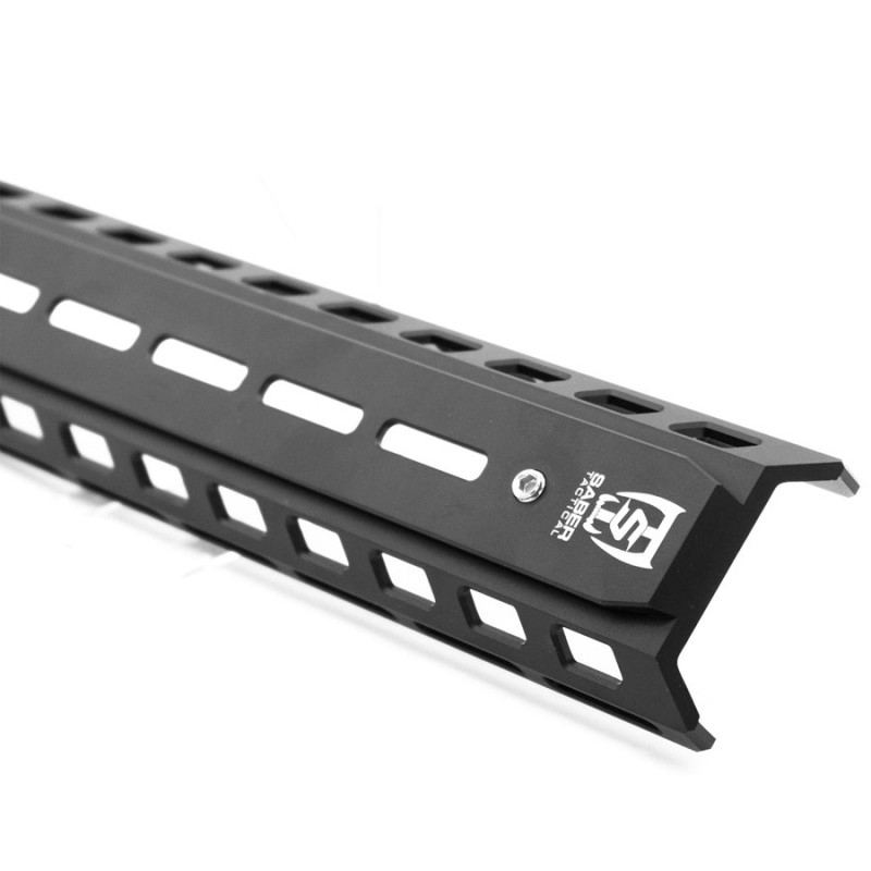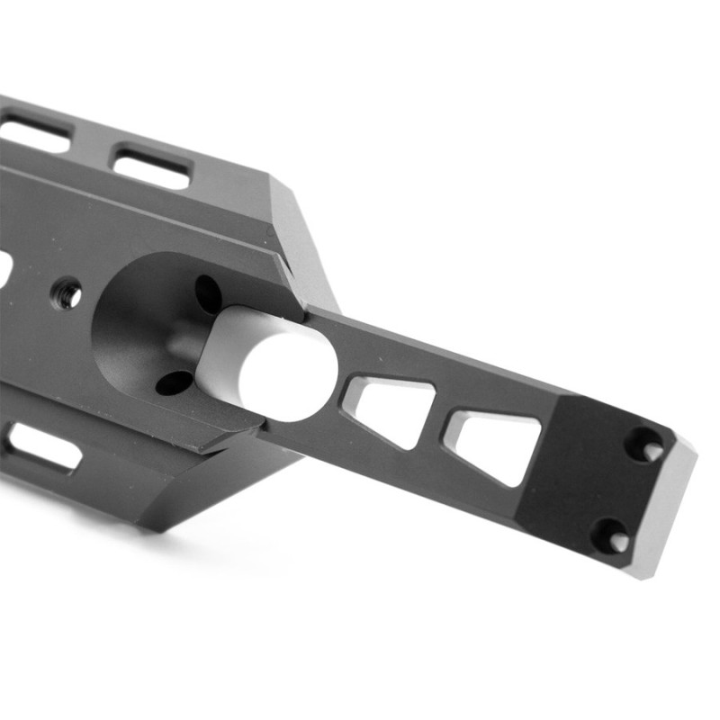 - MLok slots at the bottom and on both sides of the rail for add-on accessories.