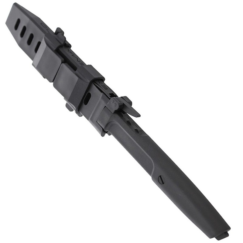Il est livré avec une gaine spéciale en nylon Aspis, spécifiquement étudiée par Extrema Ratio, pour permettre le dégagement rapide de la lame et sa fixation à l'intérieur du système M.O.L.L.E grâce à deux clips multipositions.