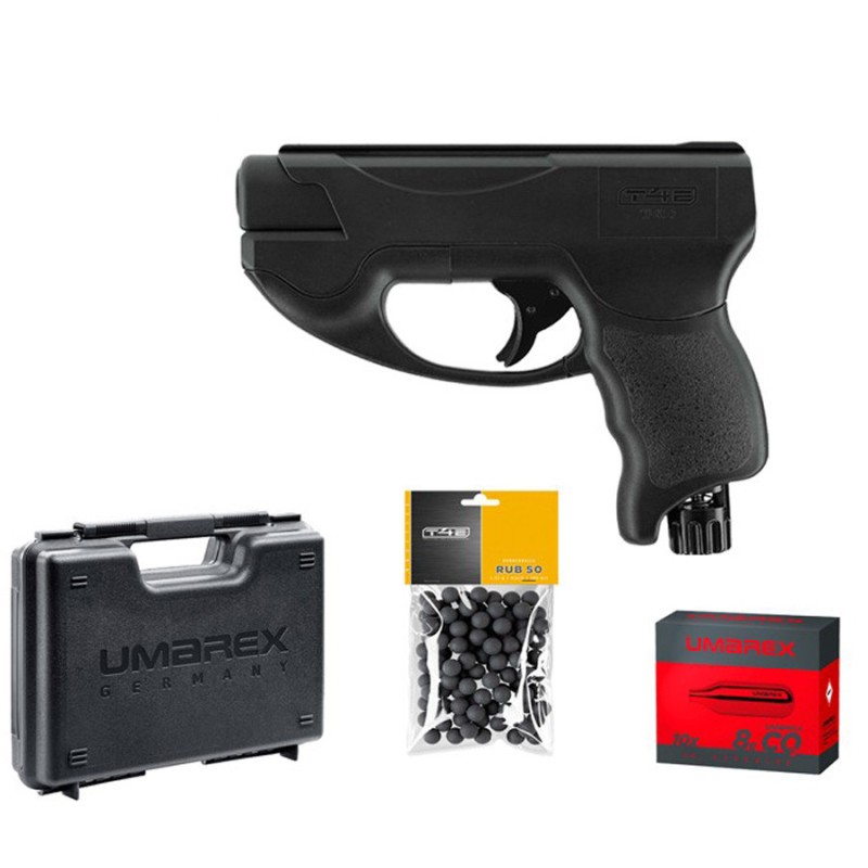 ALIMENTATION : 1 X 8G CO2 CARCASSE EN POLYMERE CHARGEUR INTERNE 4 COUPS SYSTEME QUICK-PIERCING AVEC INDICATEUR DE PRESSION VISUEL ET TACTILE ET TACTILE SECURITE DE DETENTE AUTOMATIQUE COMPATIBLE AVEC TOUTES LES MUNITIONS SPHERIQUES T4E EN CALIBRE .50 LIVRE EN PACK AVEC 100 BILLES, 10 CARTOUCHES CO2 ET UNE MALLETTE DE TRANSPORT |