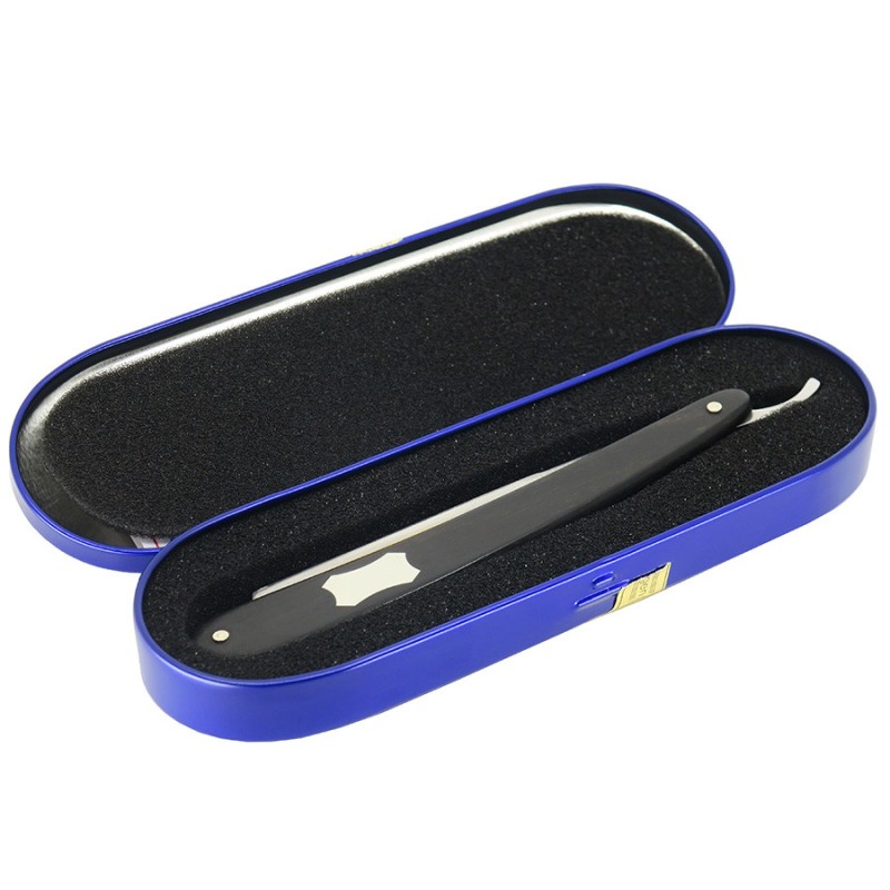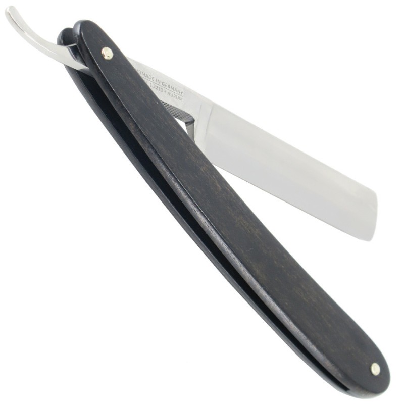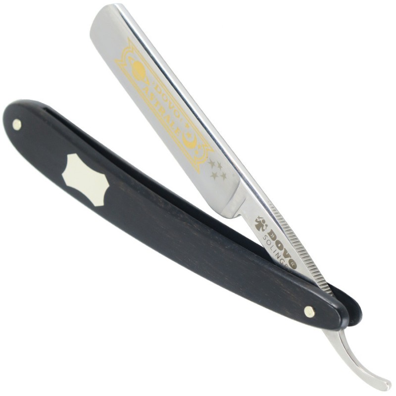 - Rasoir Dovo Astrale : lame carbone non afuté, manche ébène avec insert argent.
