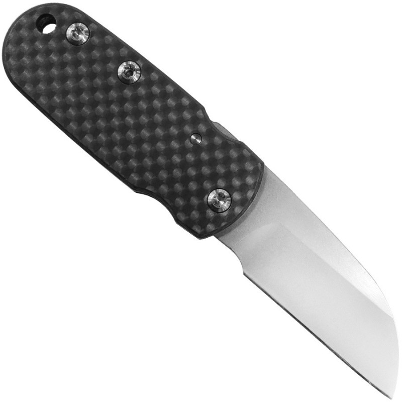 "Je suis un fabricant de couteaux pliants. Bien qu'ayant fabriqué à l'occasion quelques lames fixes, les couteaux pliants sont ma passion. Les aciers avec lesquels j'aime travailler sont les aciers CPM154, ATS-34, 440C, S30V et Stainless Damas de Chad Nichols. Les pièces de mes couteaux qui peuvent être en titane sont en titane, y compris les cadres, les liners, les boutons de pouce, les bolsters, les clips et les entretoises. Presque tout sauf la lame. En ce qui concerne les matériaux des poignées, j'utilise principalement de la fibre de carbone, du G10 ou du Micarta.