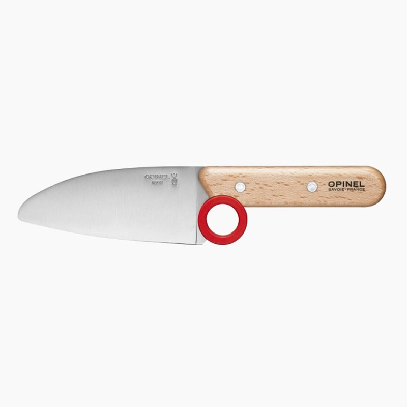 Les enfants cuisinent avec Opinel : la collection Petit Chef est idéale pour apprendre aux enfants à cuisiner. L'anneau pédagogique aide à bien positionner les doigts, le protège-doigts permet de protéger la main qui tient l'aliment à couper.