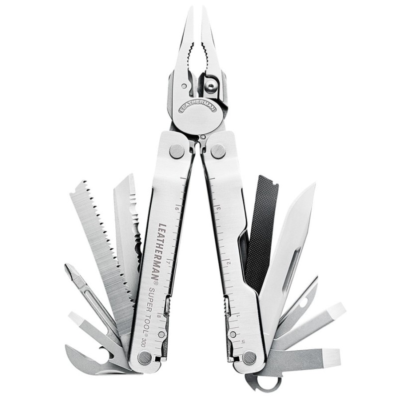- Le Leatherman Super Tool 300 est un outil conçu pour vos projets les plus complexes. Les grandes pinces de cet outil multifonction sont parmi les plus solides que nous ayons jamais produites. Ces pinces sont performantes et la forme incurvée des poignées vous permet d’accéder plus facilement aux espaces restreints. Les grandes découpes dans les poignées facilitent l'ouverture des fonctionnalités de l'outil, même avec des gants. Les poignées laminées offre une prise en main confortable pour l’utiliser au quotidien. Les pinces coupantes pour fils multibrins, fils durs et fils ordinaires font partie de l'équipement standard du Super Tool 300. Et comme elles sont amovibles, vous pouvez les réparer ou les affûter à tout moment. Doté de 19 outils robustes, il est prêt à réaliser les tâches les plus difficiles. Étui vendu séparément.