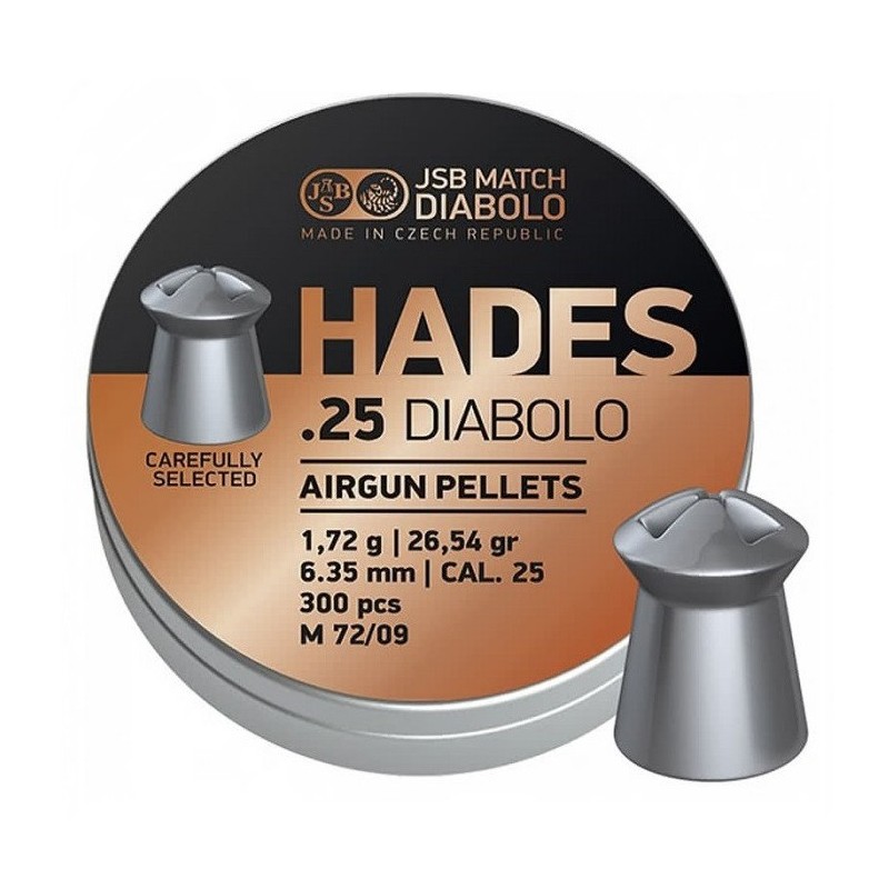 Plombs JSB Hades 6,35 mm (.25) - 1,72 G (26,54 gr) - Boite de 300