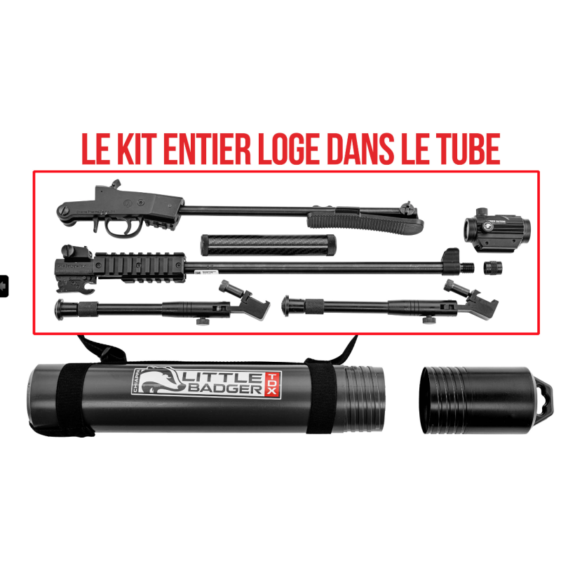 Découvrez la carabine Little Badger dans une version démontable. Ultra compact, ce pack saura plaire aux amateurs de bushcraft grâce à son tube de rangement qui rentre dans un sac à dos.
