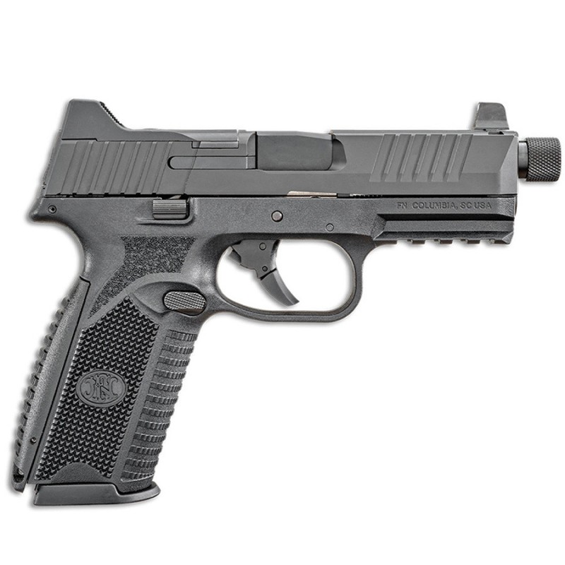 Livré avec : 2 dos de poignée interchangeables, 2 chargeurs de 17 coups, 4 plaques de montage MRD, dispositif de verrouillage & étui souple pour pistolet avec logo FN.