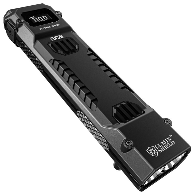 La EDC29 est une lampe torche à la fois ultra-puissante et ultra compacte. Elle délivre 6500 lumens avec un faisceau pouvant atteindre 400 mètres de portée. Elle mesure à peine 13cm pour un poids réduit de 160g. L'EDC29 dispose d'une fonction de préréglage qui permet de personnaliser un bouton à un niveau de luminosité précis. Dotée d'une batterie intégrée, d'un affichage OLED en temps réel et d'une construction robuste en acier inoxydable, elle est l'outil idéal pour les professionnels comme pour les aventuriers.