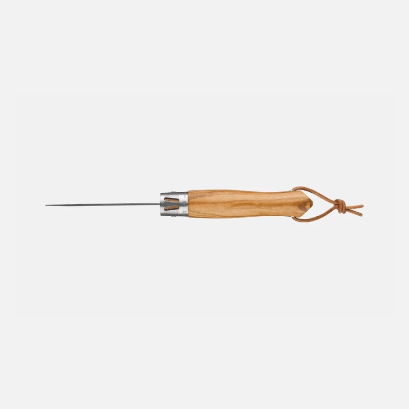 Son manche en olivier verni possède un grain chaleureux et méditerranéen. Le veinage de ce bois donne un caractère unique à chaque couteau.