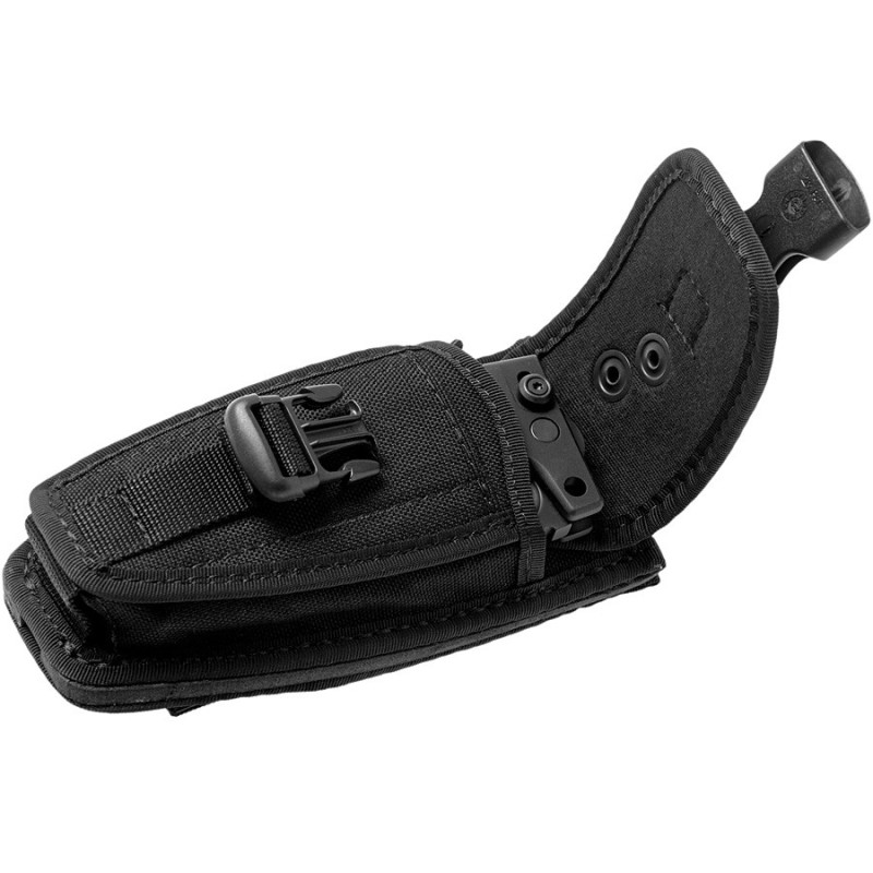 Conforme au système MOLLE, l'étui peut être fixé au gilet tactique ou à une ceintures courantes.