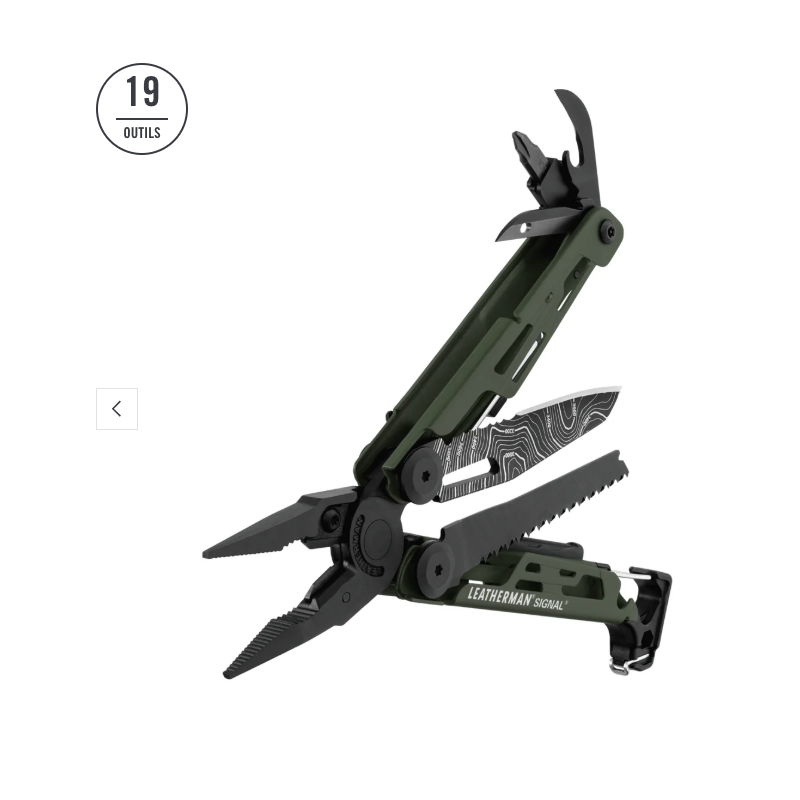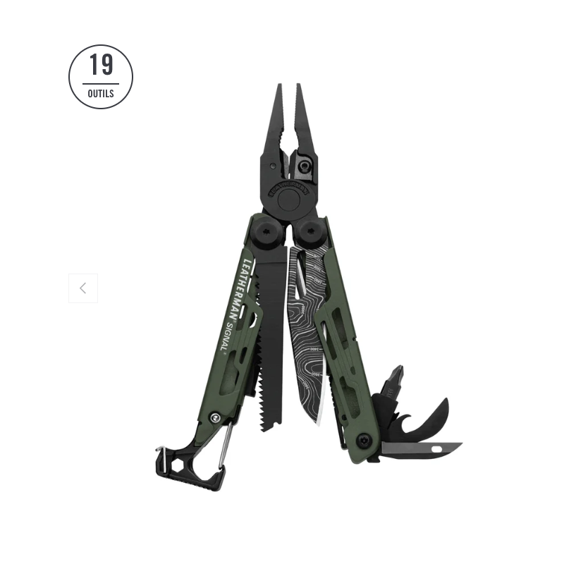 Évadez-vous dans la nature. La pince multifonctions Signal™, notre tout dernier outil multifonctions, reprend tous les outils fonctionnels classiques chers à Leatherman (pinces, scie, décapsuleur et ouvre-boîtes, poinçon, différents embouts hexagonaux et porte-embouts Leatherman) mais agrémentés de nouveautés indispensables aux situations d’urgence : lames de ciseaux, affûteur à face diamant pour lames à bord droit et dentelé, tige allume-feu en ferrocérium et sifflet d’urgence.