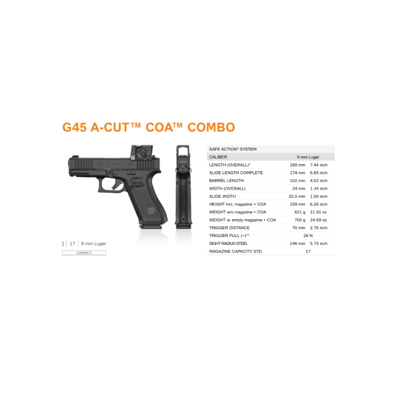 Le Glock 45 COA combine la maniabilité avec une culasse de Glock 19 et la taille de carcasse d'un Glock 17Gen5.