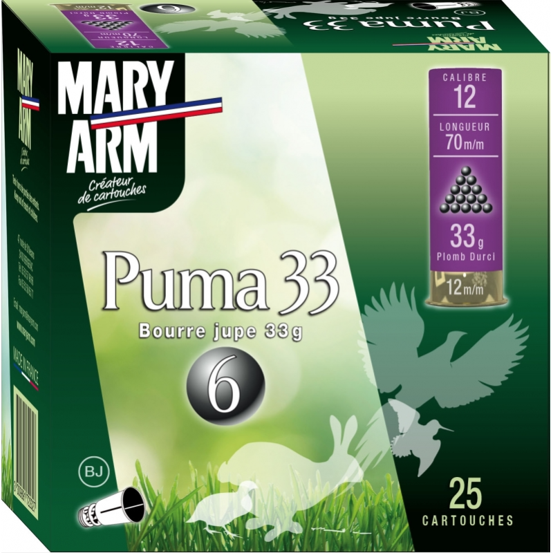 Une cartouche traditionnelle chargée d'un bourre à jupe et de 33 grs de plomb. Sa régularité de gerbe, sa vitesse et sa pénétration, sont les trois critères balistiques d'un cartouche exceptionnelle.