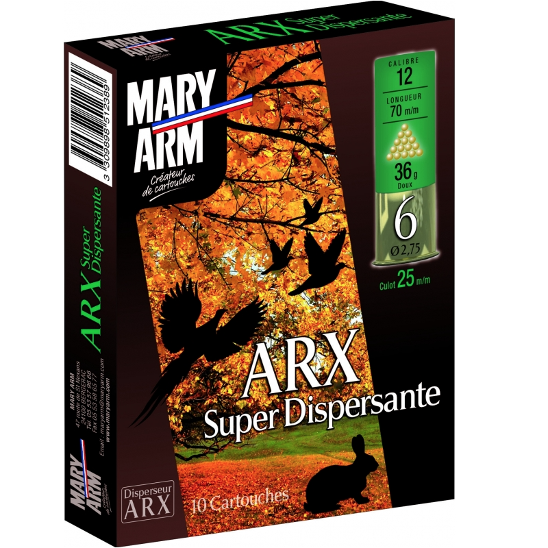 L'association d'une bourre grasse feutre rose, d'un Arx et de 36 grs de plomb doux, permet d'obtenir dans tous les types de canons, une pénétration et une dispersion exceptionnelle à courte et moyenne distance (15 a 30 m).