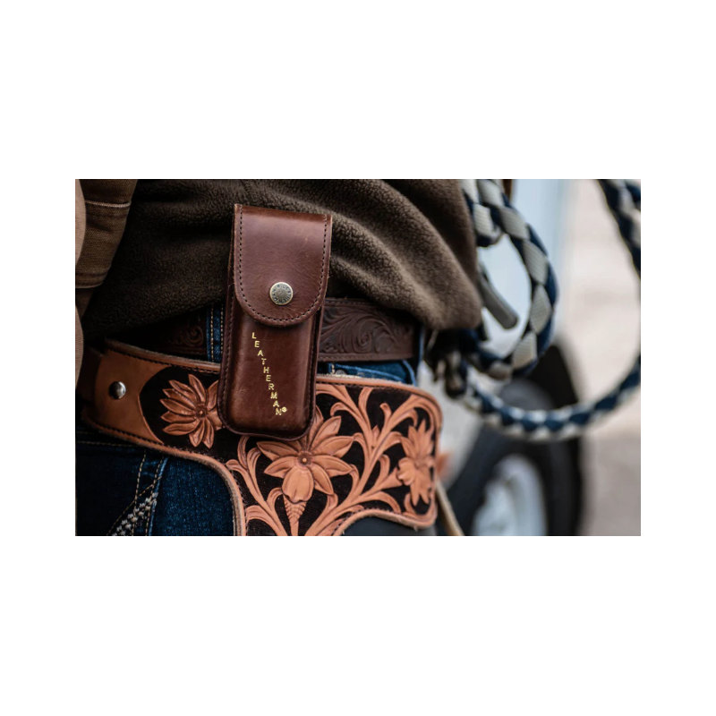 Mettez en valeur votre outil préféré avec un étui Heritage en cuir haut de gamme conçu pour des performances élevées et pour une utilisation durable. Cet étui arbore le logo Leatherman estampé en aluminium et un bouton pression personnalisé. Fabriqué aux États-Unis.