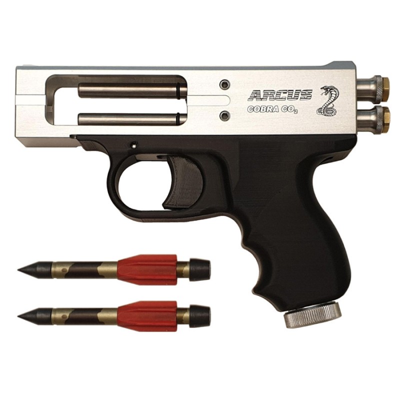 L'ARCUS Cobra est le premier pistolet à flèche CO2 à 2 coups au monde. Il a été développé pour le tir à courte distance (jusqu'à 10 mètres), comme aussi dans des pièces fermées. Avec les flèches courtes et très robustes d'une masse de 15 grammes et d'une vitesse initiale de 51 mètres par seconde, une énergie initiale de 19,9 joules est atteinte.