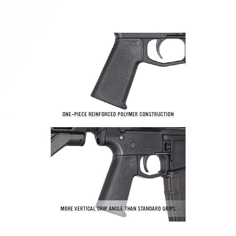 La poignée pistolet MOE-K® est conçue pour remplacer les poignées pistolet d'origine des armes AR15/M4. Compacte et mince, elle améliore l'ergonomie avec un angle de préhension plus vertical et elle dispose d'un grip très efficace pour un bon contrôle de l'arme dans toutes les conditions. Cette poignée ne possède d'emplacement de stockage. Utilisée par de nombreuses unités d'intervention et forces spéciales dans le monde.