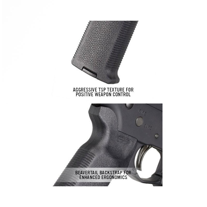 La poignée pistolet MOE-K2® est conçue pour remplacer les poignées pistolet d'origine des armes AR15. Elle améliore l'ergonomie avec un angle de préhension plus vertical et elle dispose d'un grip très efficace pour un bon contrôle de l'arme dans toutes les conditions. La poignée possède également une petite trappe permettant d'y stocker de petites choses comme quelques balles, un mini kit de nettoyage, de la paracorde, des piles etc.... Utilisée par de nombreuses unités d'intervention et forces spéciales dans le monde.