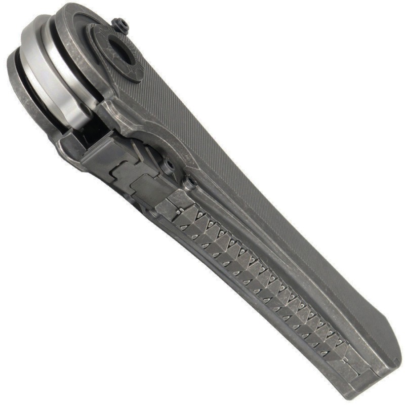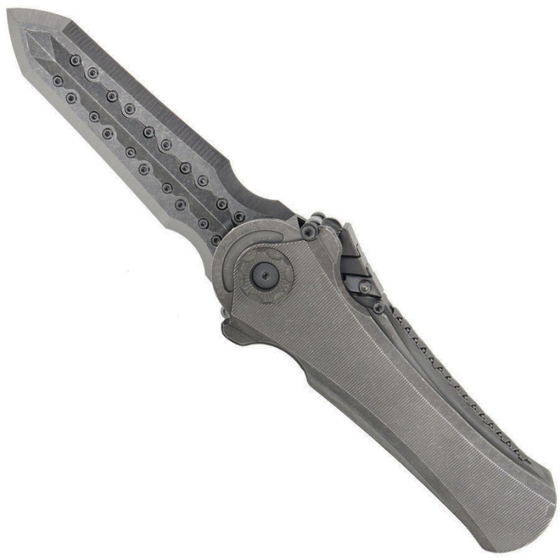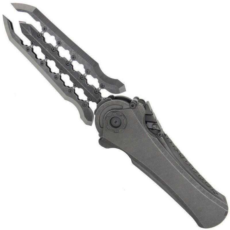 Couteau à système gravité, en tournant l'axe centrale la lame changera de forme lors de l'ouverture