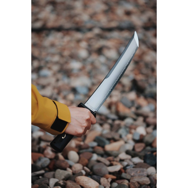 Inspiré du profil classique du Tanto, issu de la lignée du katana, chaque courbe et chaque biseau reflètent la tradition du sabre, non seulement par son apparence, mais aussi par son équilibre et ses performances.