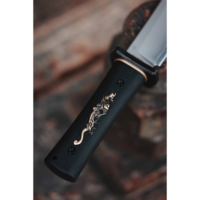 Le manche est orné d'un motif dragon en laiton de style vintage, symbole de force, d'honneur et de pouvoir ancestral. Il évoque l'esprit des samouraïs et s'impose dans toute collection.