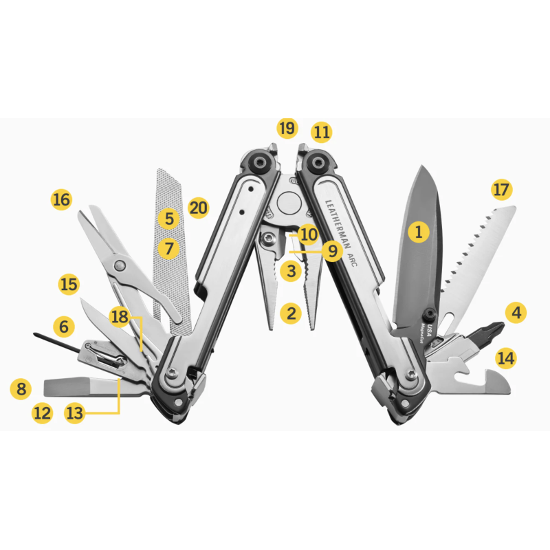 L'ARC est notre outil multi-usage le plus avancé, conçu pour être à la fois durable et plus facile à utiliser. Il est équipé d'une lame en acier MagnaCut qui garde son tranchant plus longtemps et résiste à la rouille, le rendant parfait pour les tâches quotidiennes et les travaux extérieurs difficiles. Chaque fonctionnalité est accessible de l'extérieur, se verrouille en toute sécurité, et s'ouvre facilement d'une seule main grâce à la technologie FREE®. Un revêtement solide ajoute une protection supplémentaire. Tous les outils peuvent être ouverts d'une main et se verrouillent en place pour plus de sécurité.