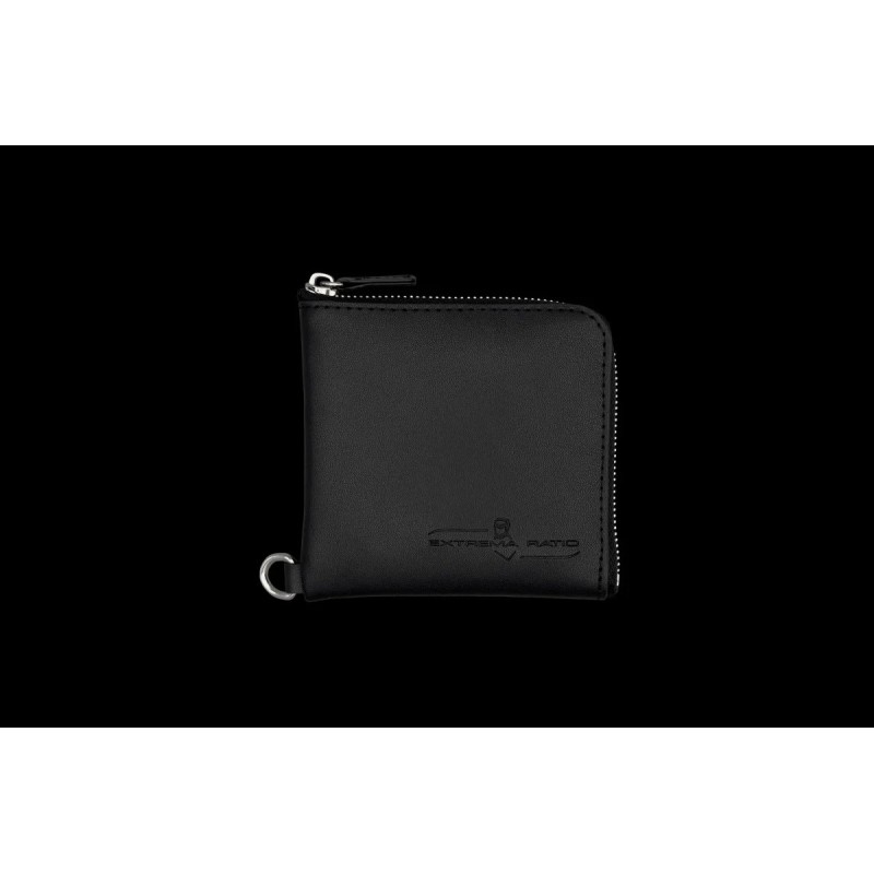 Portefeuille urbain en cuir noir avec fermeture éclair sur trois côtés et un petit crochet pour y attacher une lanière à la ceinture, évitant ainsi toute perte accidentelle ou vol. Conçu pour contenir tout le nécessaire (cartes de crédit, billets, etc.), c'est un accessoire aussi durable que les outils Extrema Ratio : un indispensable du quotidien.