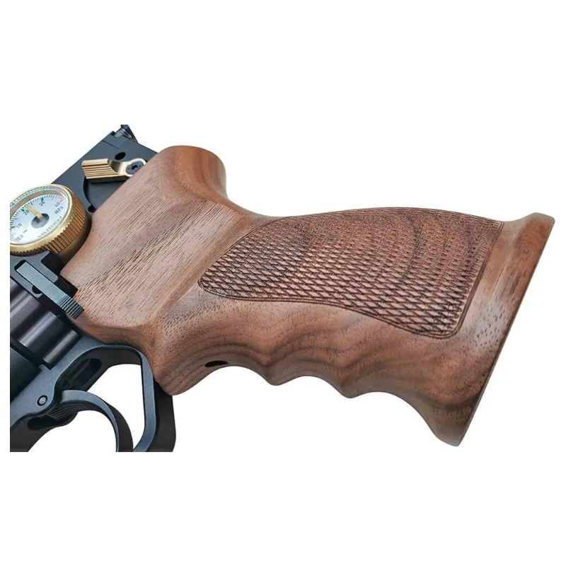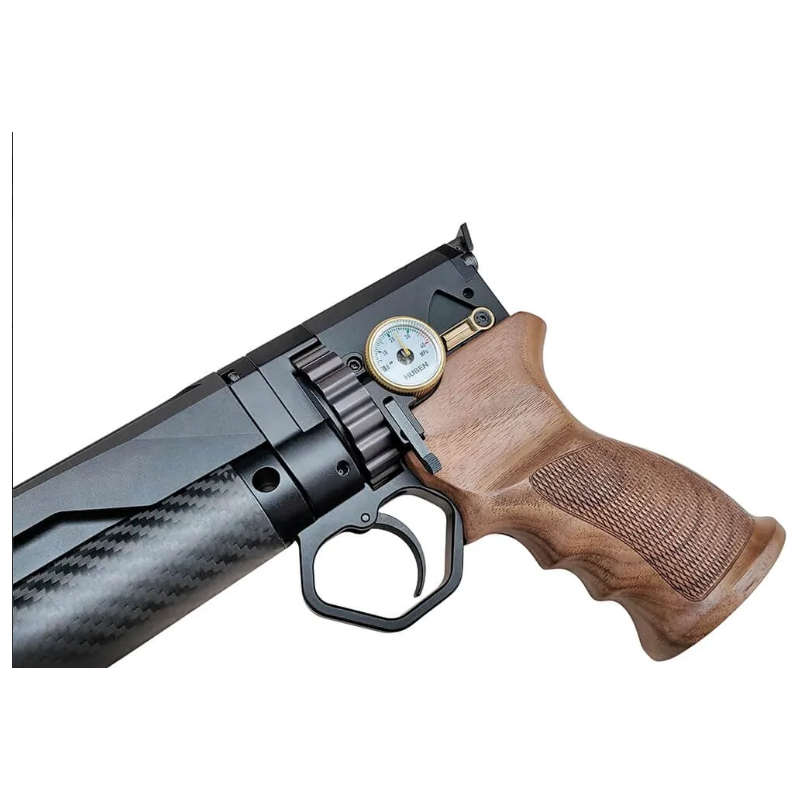 Ce pistolet à air comprimé PCP est doté d'une fonctionnalité semi-automatique et est proposé en différents calibres allant jusqu'à .30, afin de répondre à diverses préférences de tir. Avec une capacité de chargeur fixe de 19 plombs pour 5,5 mm et 17 plombs pour 6,35 mm, le rechargement est fluide. Le mécanisme de rotation du chargeur, situé derrière celui-ci, assure un fonctionnement fluide tout en protégeant le système contre les dommages.