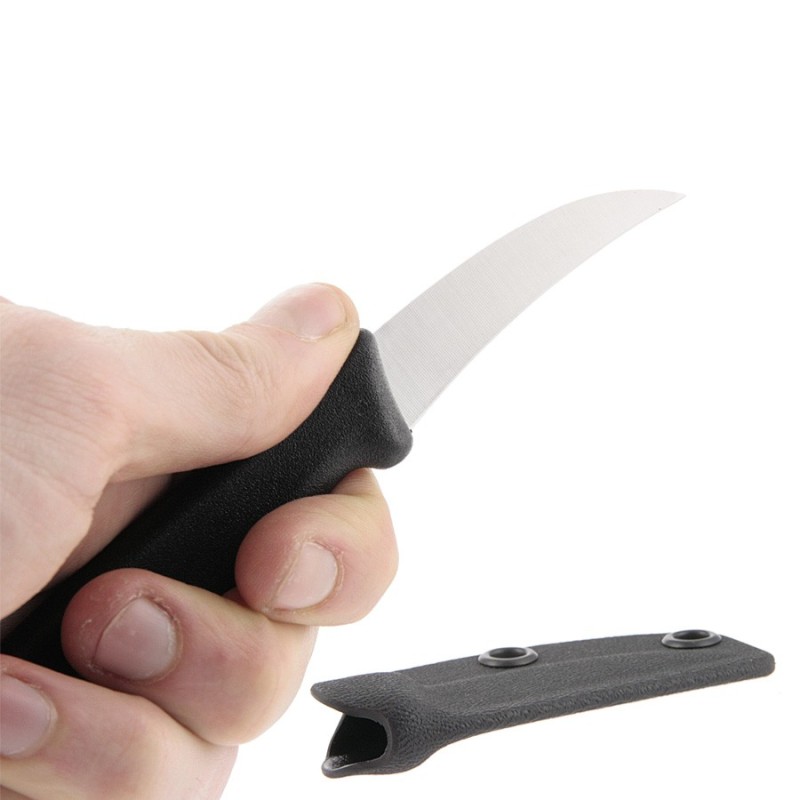 Avec ce petit couteau compact et ultra léger (19 gr), lame courbe en inox de 6cm à la manière d'un griffe, il n'a pas fallu longtemps pour comprendre les possibilités d'utilisation de ce "bec d'oiseau" (ou "paring" en anglais) en situation de self défense.