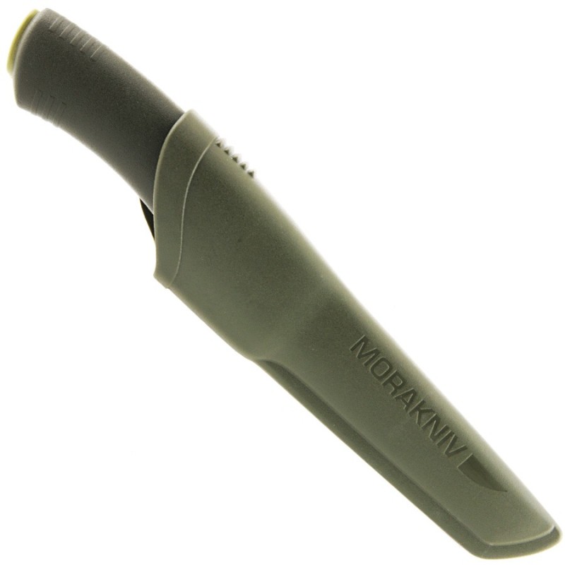 Poignard MORA « BUSHCRAFT FOREST », lame 11 cm inox, manche gomme vert, étui rigide vert.