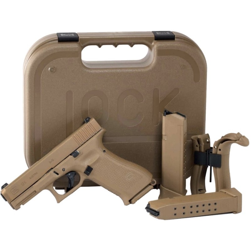 - le nouveau chargeur comporte un élévateur orange et un talon de chargeur légèrement surdimensionné (le pistolet reste compatible avec tous les anciens chargeurs Glock), sauf pour le Glock 19X qui est livré avec 3 chargeurs assortis à la couleur de la carcasse.
