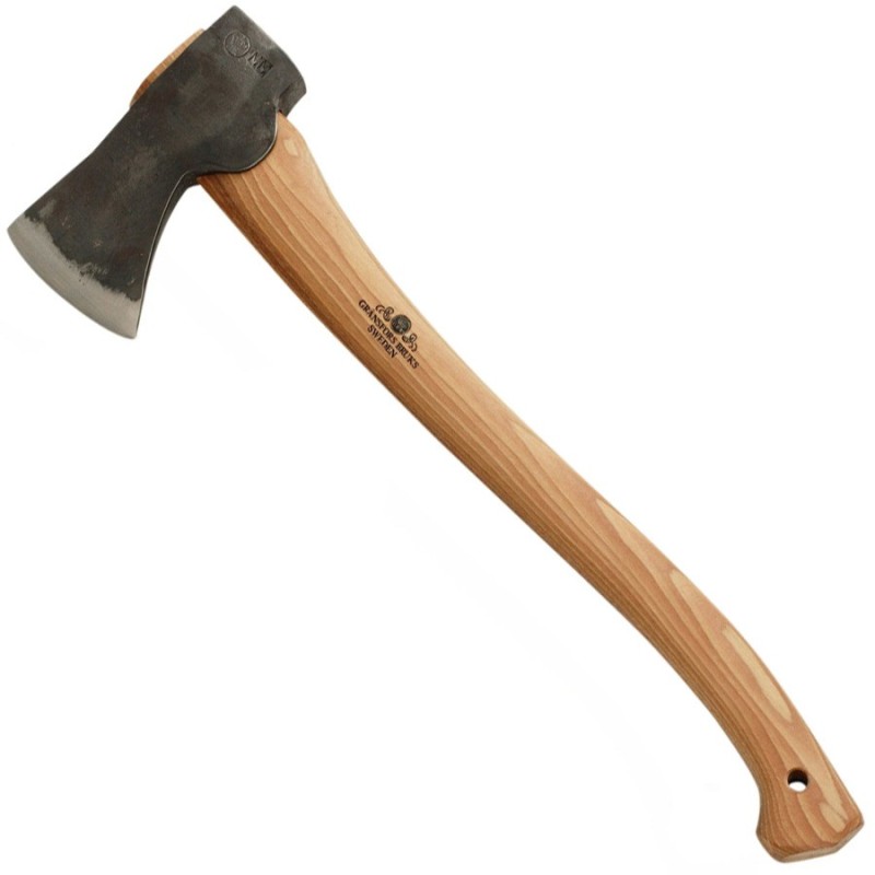 La "Small Forest" de Gränsfors Bruks a une tête plus grande et un manche plus long que la "Wildlife Hatchet" et offre donc plus de puissance de coupe. Cependant, elle est encore suffisamment petite pour tenir dans votre sac à dos.