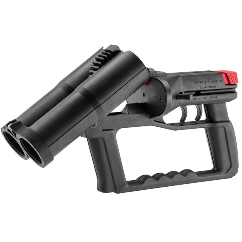 - Une arme économique et très légère, réalisée entièrement en matériau composite. Son système d’armement manuel à chiens extérieurs en fait une arme simple et sûre. Rechargement rapide grâce à son double canon basculant vers l’avant.