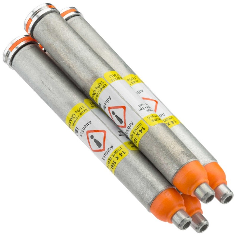 Les cartouches active de défense de type OC de couleur orange permettent des tirs de gel poivre à très grande vitesse et grande distance jusqu'à 7 mètres, ils permettent de neutraliser un ou plusieurs agresseurs à la fois.