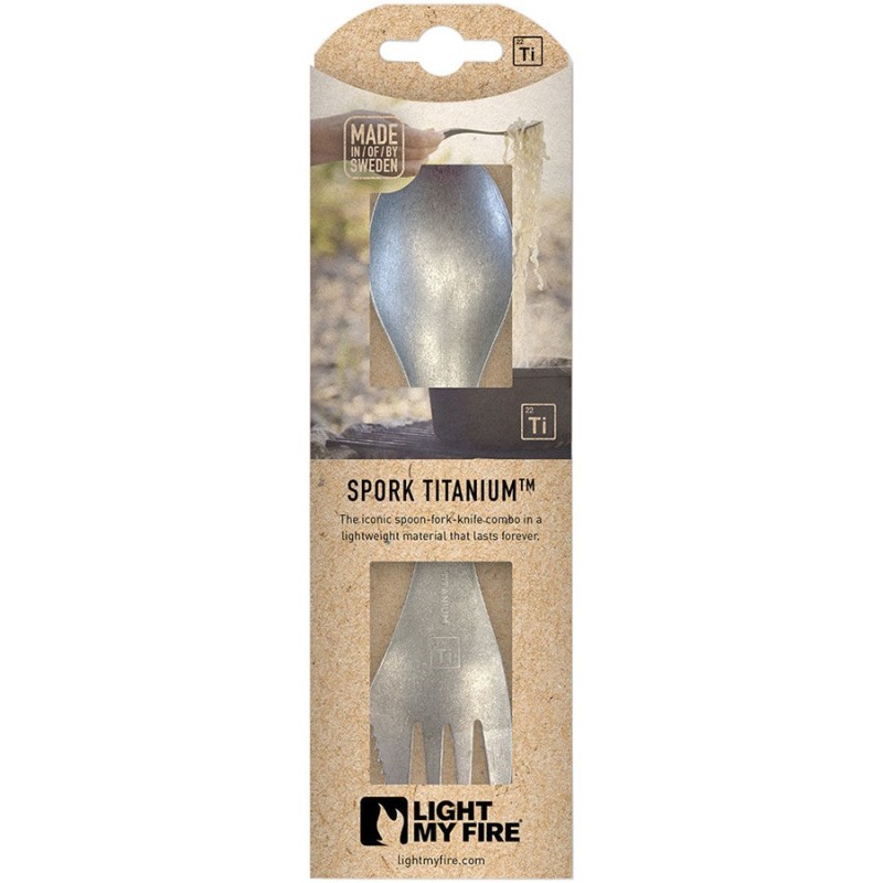 La Spork Titanium a le même design que l’incontournable Spork Light My Fire tout en étant plus solide ! Ce modèle en titane allie robustesse et légèreté. Ce couvert 3 en 1 sert de cuillère et de fourchette. Un rebord dentelé sur l’extérieur de la fourchette permet de cisailler des petits aliments.