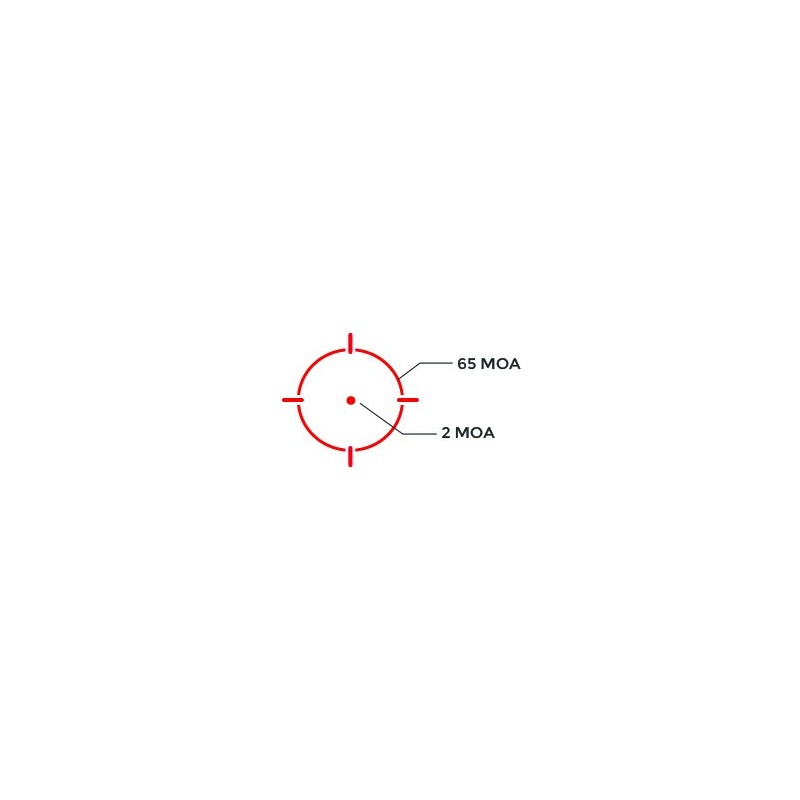 Réticule : 2 MOA dot, 65 MOA circle dot ou 65 MOA Circle (1 MOA = 3 cm à 100 mètres).